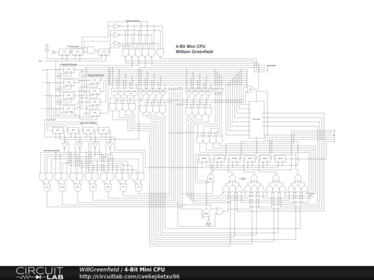 Custom 4-Bit CPU Schematic and Control. Enough with the vague design talk - here's the circuit schematic for the Nibbler 4-bit CPU! Click the image to zoom in to a full size view. The whole system fits on a single page, including the CPU itself and the I/O devices, so it's easy to wrap your head around. Except for RAM and ROM, all the ...