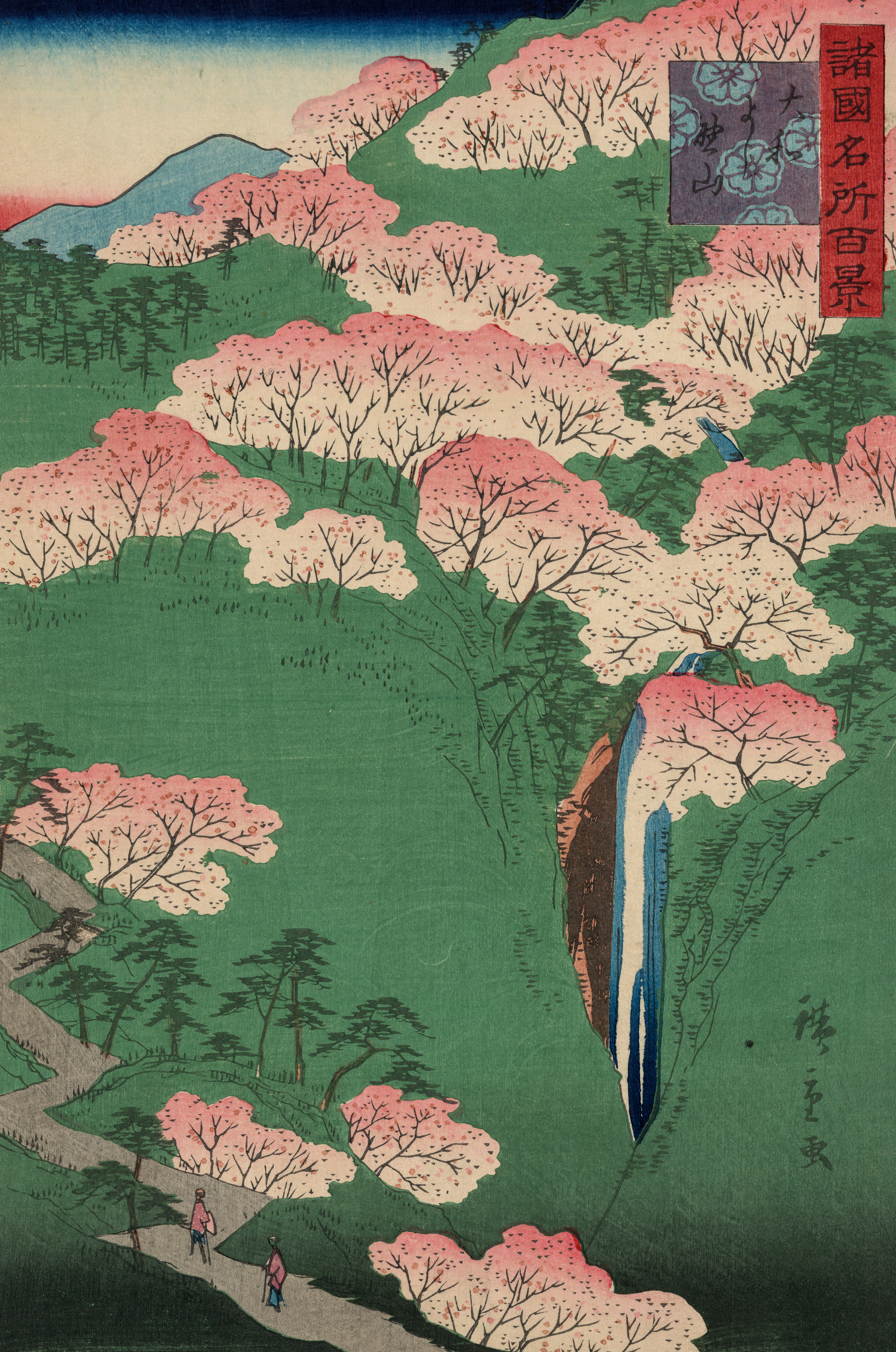 Yamato yoshinoyama. [Translation: Yoshino Mountain in Yamato Province]. Woodcut print by Utagawa Hiroshige, 1859. Library of Congress Prints & Photographs Division. https://www.loc.gov/resource/jpd.01362/